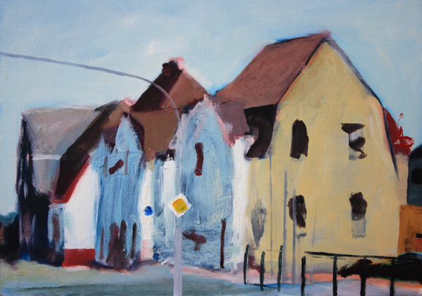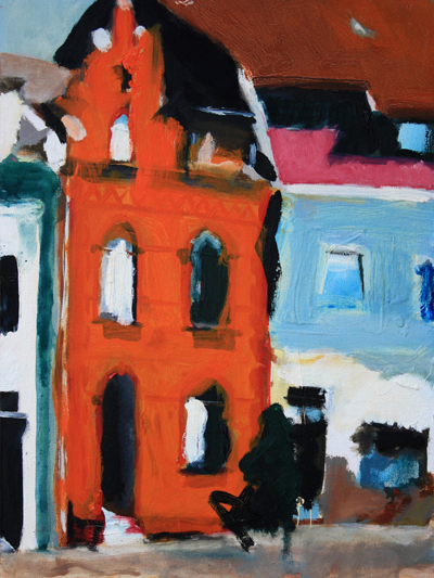 Rathausturm Haus am Markt mit roter Fassade Hinterhof Kaufhaus Fachwerk und Bäume Ausfallstraße