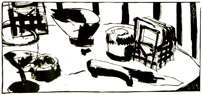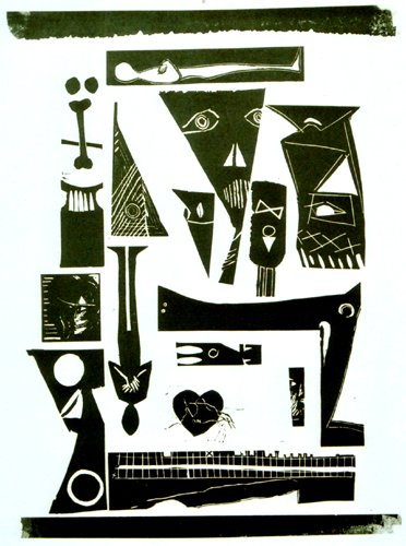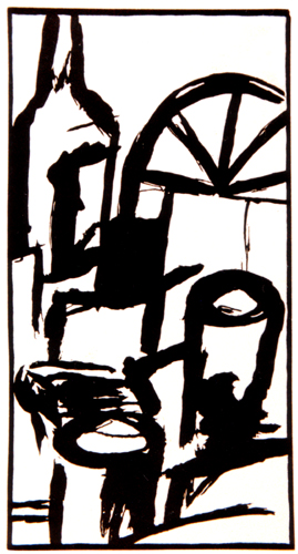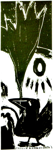 Vogel Linolteufel Stilleben mit Messer, 1994 Katzenleiter Ägypten